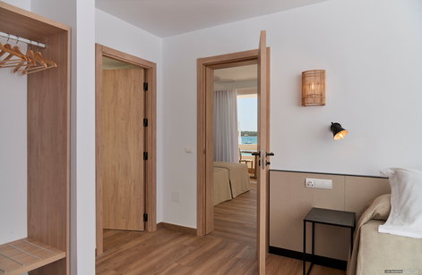 This air-conditioned apartment has a twin bedroom, and a living room with 2 single beds and a sofa bed. There is a flat-screen satellite TV, a private balcony with sea views and a well-equipped kitchen with fridge and kitchenware.
